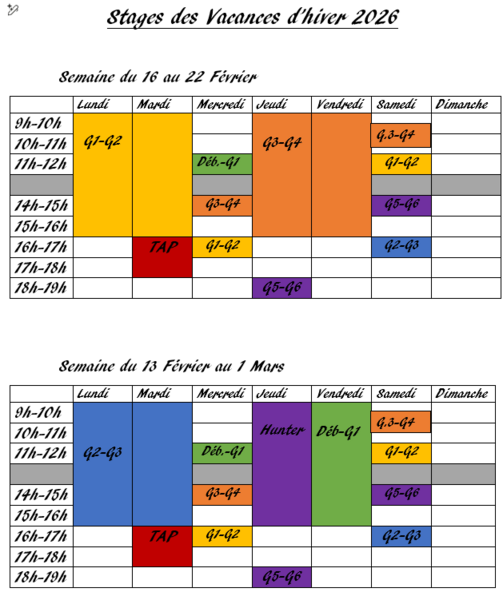 VOUS TROUVEREZ SUR CETTE PAGE LA PLANNING DES STAGES DES VACANCES DE FEVRIER